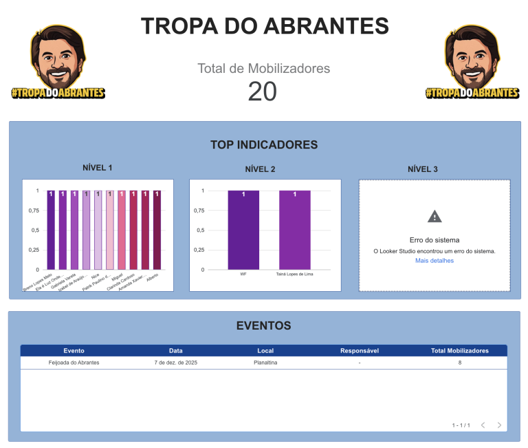 Indicou alguém? Participou de ação? Mobilizou sua rua? O sistema registra. Aqui não tem padrinho — tem mérito. Os mais engajados ganham destaque e reconhecimento público.